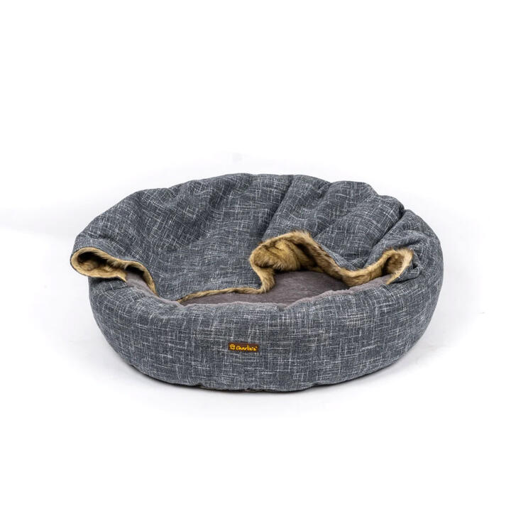 Charlie's Vip Wolf Hooded Nest Bed With Faux Linen And Fur For Pets Dark Grey 1 X Medium