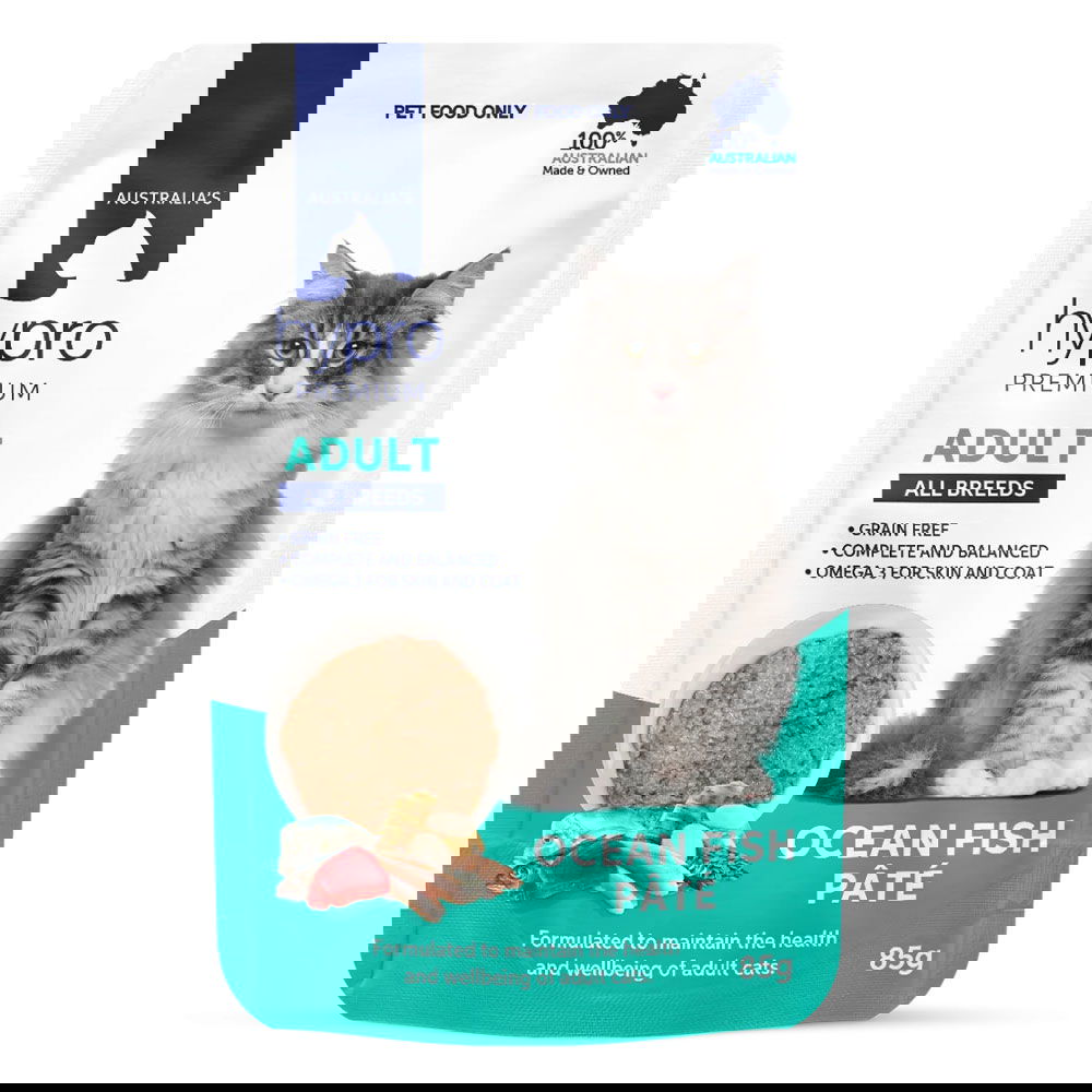 Hypro Premium Adult All Breeds Grain Free Ocean Fish Pate Wet Cat Food 85gm 12 Pack