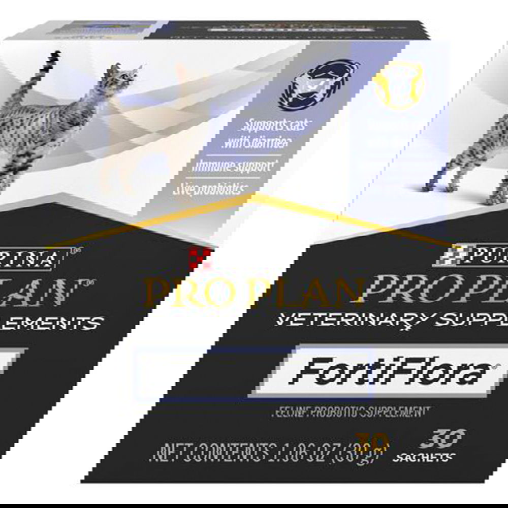 Pro Plan FortiFlora for Cats helps manage diarrhoea & promotes gut health with live probiotics that build daily defences.