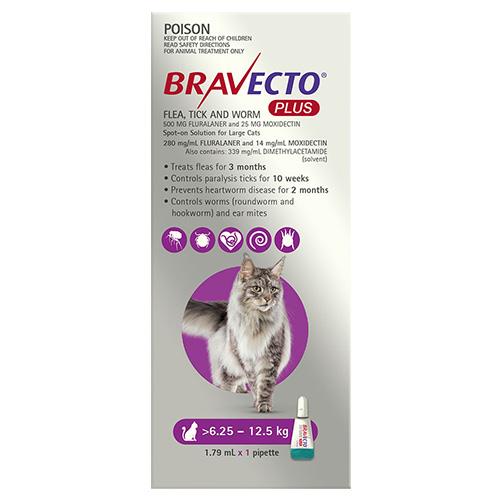 Bravecto Plus For Large Cats 6.25 – 12.5 Kg (Purple) 1 Pack