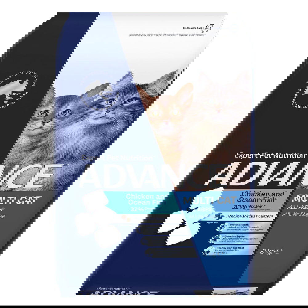 Advance Multi Cat All Ages Chicken And Ocean Fish Recipe For Fussy Eaters Dry Cat Food 8 Kg