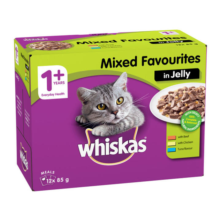 Whiskas Adult 1+ Years Mixed Favourites In Jelly Wet Cat Food 85gm 12 Pack