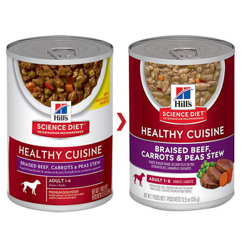 Hill's Science Diet Healthy Cuisine Adult 1-6 Braised Beef, Carrots & Peas Stew Wet Dog Food 354gm 12 Cans