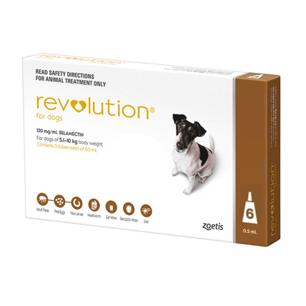 Revolution (Selamectin) For Small Dogs 5.1 To 10kg (Brown) 6 Pack