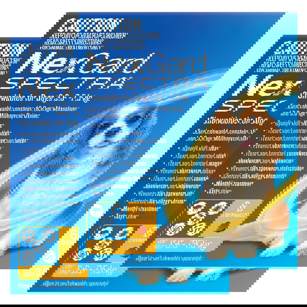 Shop NexGard Spectra for Dogs at VetSupply. Protect your dog from fleas, ticks, heartworms, and intestinal worms with this effective chewable treatment. Free shipping available Australia-wide.