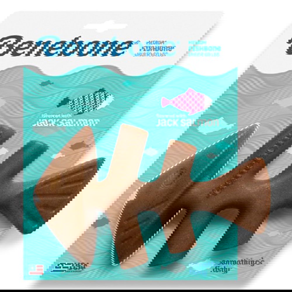Benebone Fishbone Jack Salmon Chew Toy For Dogs Medium 1 Piece