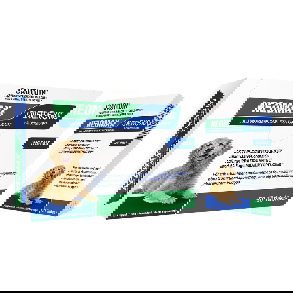 Neomax Allwormer tablets for dogs guard against a spectrum of parasites, safeguarding your dogs. Order now Allwormer tablets for dogs at VetSupply.